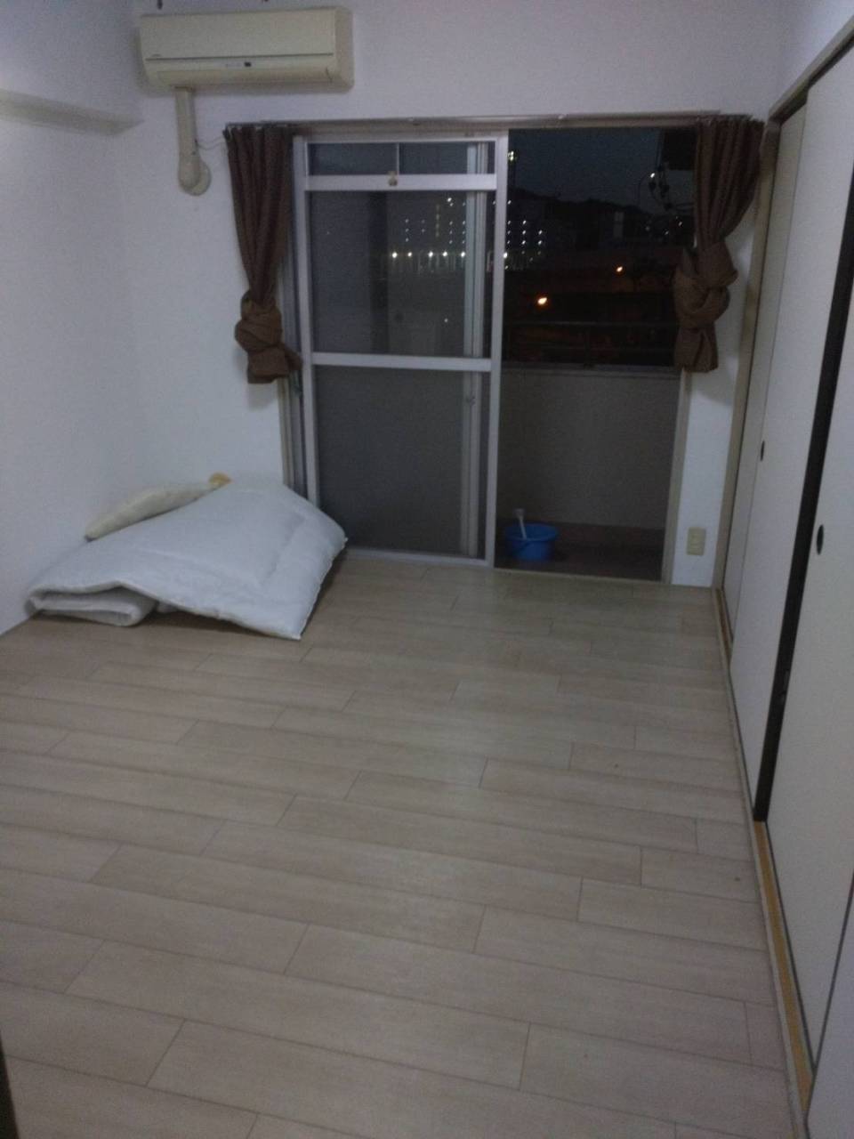 ・ベランダ付き! 洗濯物を干したり、夜景を眺めたり(夜の写真のため)、リフレッシュできます。